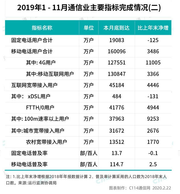三大运营商的移动电话用户已经超过16亿户,远超全国14亿的人口总量。实际上,移动电话用户突破人口规模限制后,仍然保持了多年的持续正向增长。按照工业和信息化部公布的最新数据,截至2019年11月份,移动电话普及率已经高达114.7部/百人,这个数据在2019年又增长了2.5部/百人。